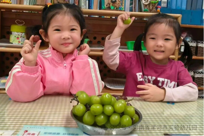 等把葡萄清洗干净,孩子们迫不及待地品尝起来来。“我吃的紫色的葡萄,有点酸。““我尝的也是紫色的,可甜啦。““绿色的葡萄最甜呀””孩子们兴奋地交流着发现。在这一口口清甜里,孩子们笑着闹着,悄悄把秋天的味道装进了心里。