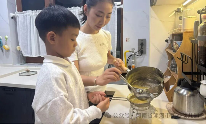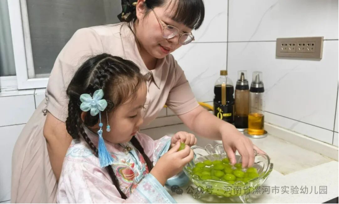 亲子食育活动中,孩子们和家长一起买葡萄、洗葡萄、剥葡萄,再加上糖煮一煮,做成葡萄汁,第二天,带到幼儿园,跟小伙伴炫耀:“这是我和妈妈一起做的,比饮料好喝!”孩子们分享的不仅是果饮,还有和爸爸妈妈一起动手的快乐。