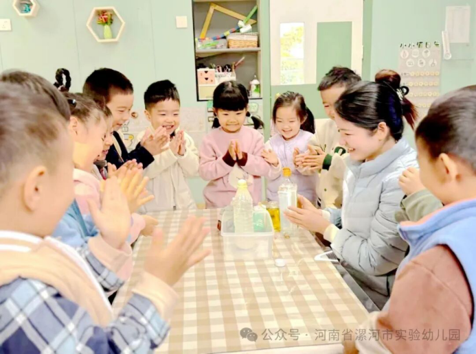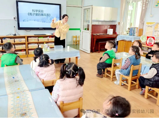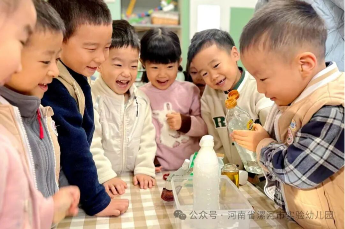 一场“瓶中暴风雪”科学小实验,点燃了孩子们的探索热情。老师准备了小苏打、白色颜料、食用油、白醋,孩子们将这几种材料依次放进装着清水的瓶子中,观看白色泡沫在瓶中像暴风雪一样翻滚,宝贝们惊呼连连,沉浸在这场趣味十足的科学之旅中。