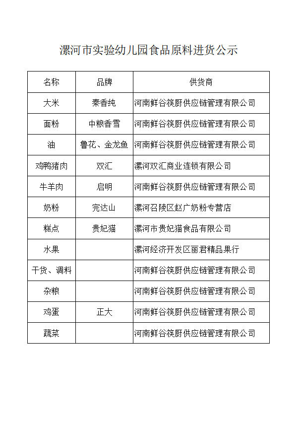 漯河市实验幼儿园食品原料进货公示