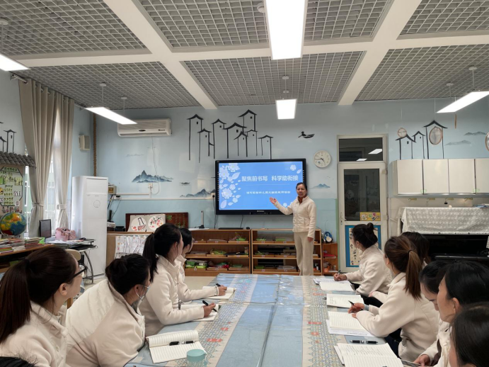 最后,教研组长赵老师对本次教研进行了总结。她指出,前书写是幼小衔接中至关重要的一环,需要我们以更科学、更儿童化的视角去支持和引导。她鼓励全体大班教师将本次教研的成果转化为日常教学行为,持续观察、记录并支持每一位幼儿的书写发展,让“书写”的种子在孩子们心中快乐萌芽。