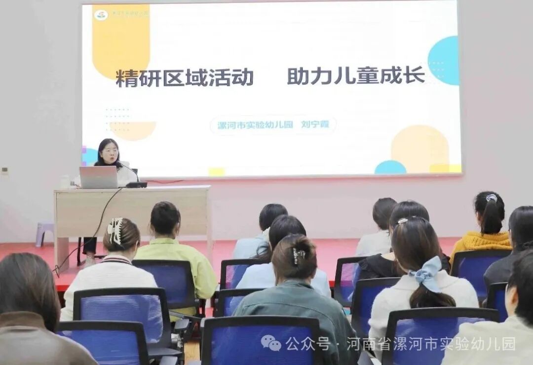 下午,我园教科研主任刘宁霞作《精研区域活动 助力儿童成长》专题讲座。她结合区域活动场景,系统阐述了区域活动的价值定位、环境规划、材料投放与组织流程等核心要素,清晰呈现了激发幼儿自主探索、促进其综合发展的有效策略,并聚焦实践中的真问题,给出了可操作的解决方案,为教师提升区域活动的科学性与有效性奠定了坚实的理论基础。