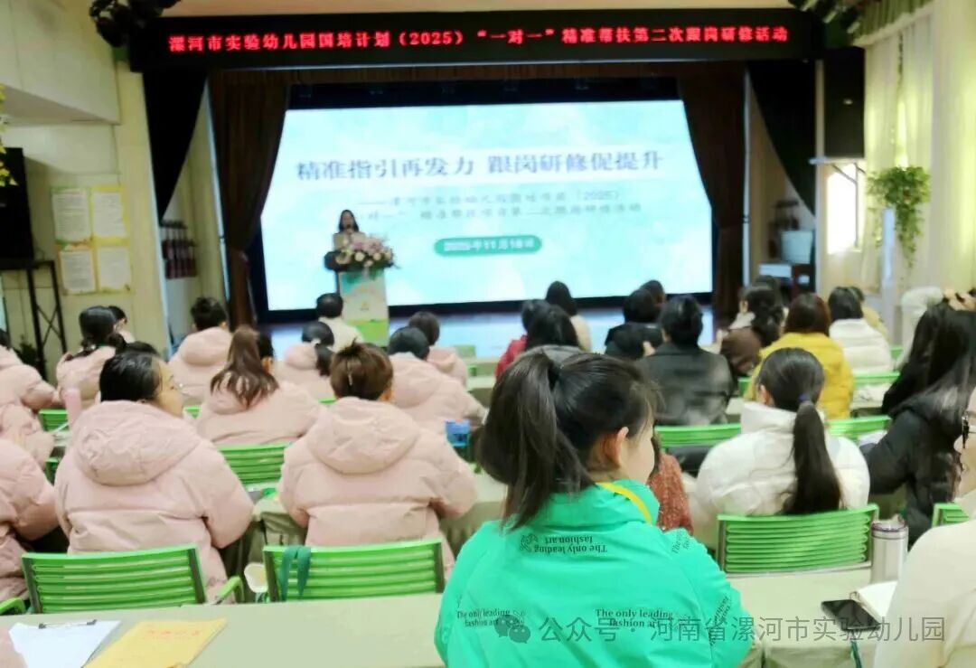 为进一步贯彻落实河南省教育厅2025年国培计划“一对一”精准帮扶项目精神,推进精准帮扶项目高效落实,11月18—21日,漯河市实验幼儿园精准帮扶项目第二次跟岗研修活动顺利开展。来自漯河经济技术开发区实验幼儿园、上蔡县直机关幼儿园、上蔡县第三幼儿园的领导和骨干教师60余人参加了此次活动。
