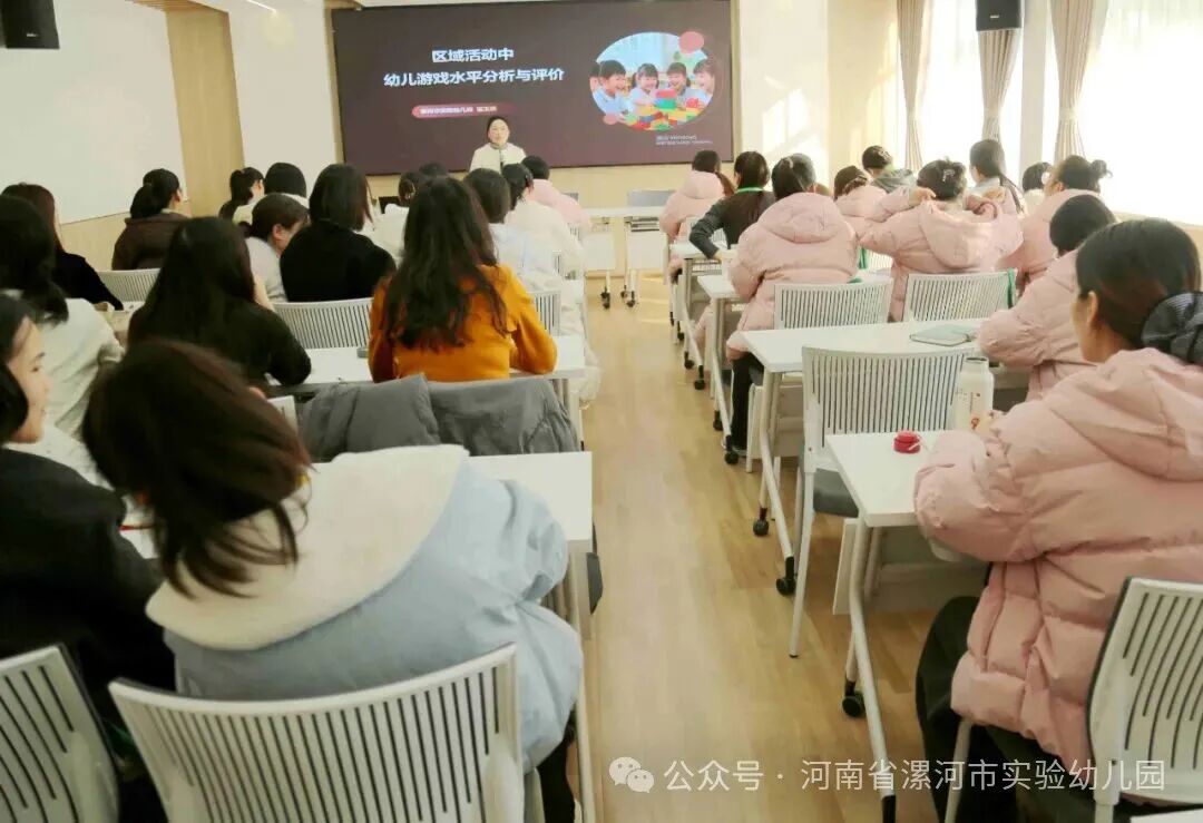 为有效提升教师的教科研能力,提升其组织实施与科学评价的专业能力,我园特邀开封市教育科学研究院教研员刘振民、我园中原名师谌玉晓,分别作了《把区域建设成友好型自主学习活动空间》与《区域活动中幼儿游戏水平分析与评价》两场专题讲座。讲座聚焦“区角规划”“材料投放”“标识系统”“幼儿行为解读”“教师指导”等关键内容,引导教师优化区域环境,读懂幼儿、支持幼儿深度学习,将其打造为真正吸引幼儿、让幼儿留恋的成长空间。